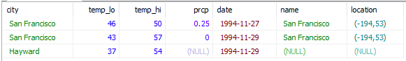 SELECT * FROM weather LEFT OUTER JOIN cities ON (weather.city = cities.name);